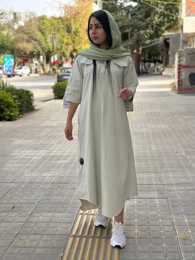 توضیحات : : پشت کار پیله دارد،آستین سه ربع،دو جیب روی سینه.