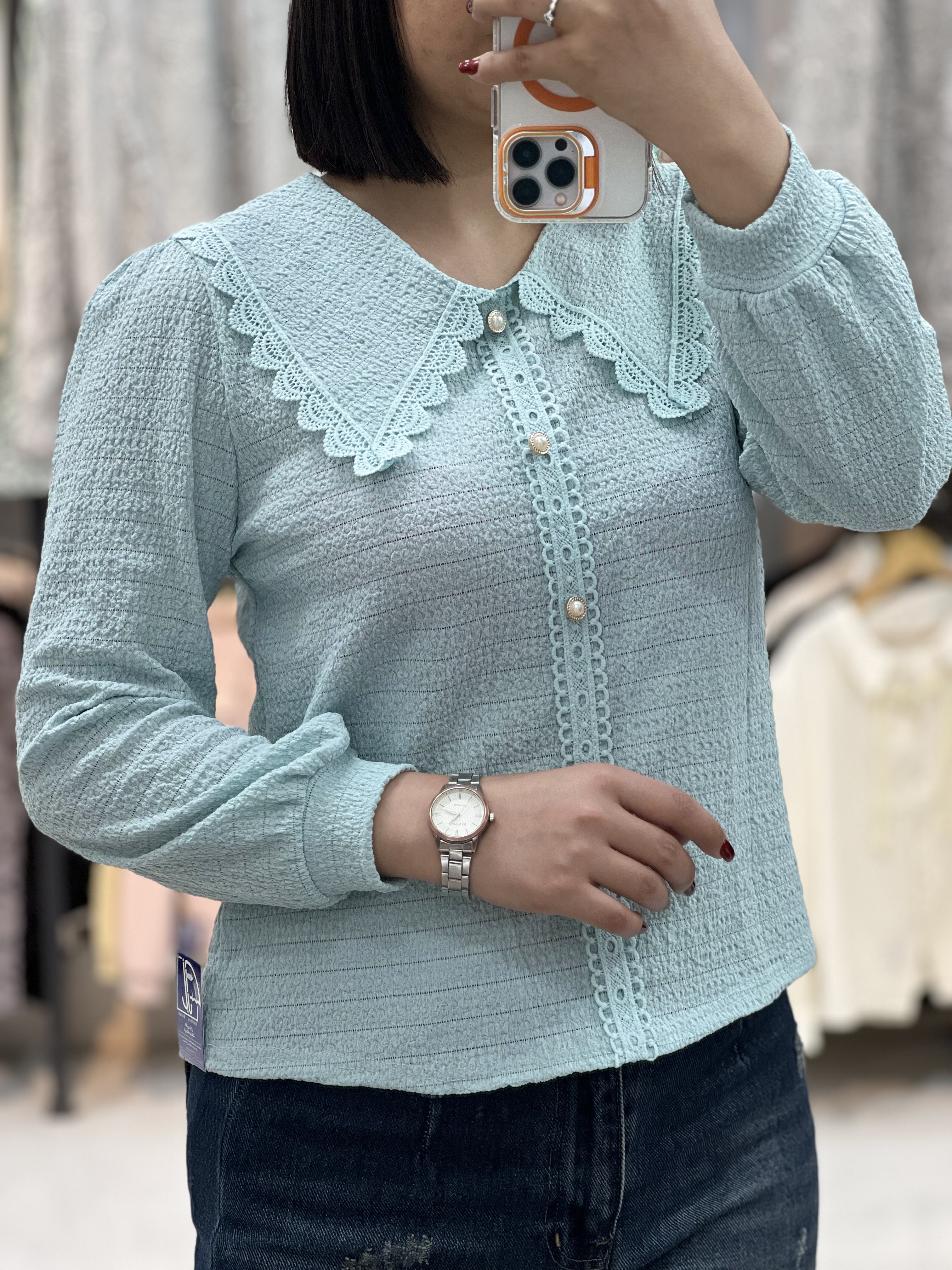شومیز وارداتی دخترانه قد:۵۵ کد:۵۵۵۱ رنگبندی:سبز آبی.لیمویی.شیری.سفید. قیمت:۱۵۰۰ سایزبندی:فری از سایز ۳۶تا ۴۶